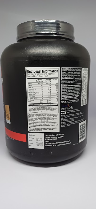 Muscletech Nitrotech Whey Protein delivers 30g of high-quality protein per serving, enriched with naturally occurring BCAAs and creatine to support lean muscle growth, strength, and recovery. Low in sugar and fat, this protein is designed for fitness enthusiasts and athletes who want maximum results without unnecessary fillers. It mixes easily in water, milk, or smoothies, making it a convenient addition to your daily nutrition routine.